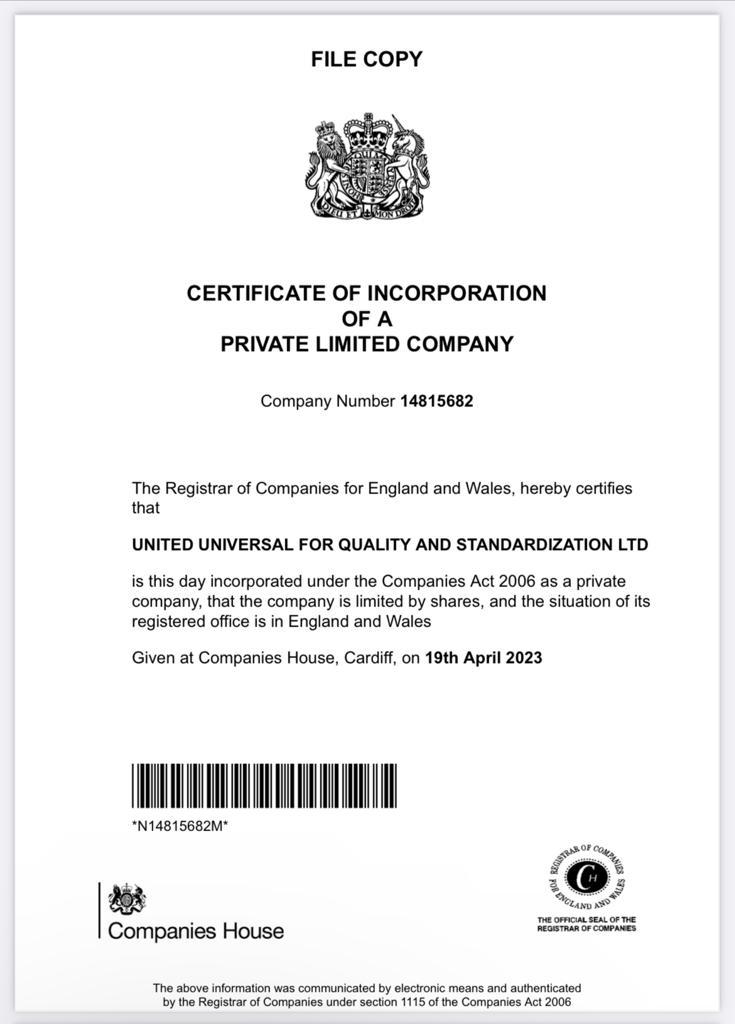 Copyright ©2023 United Universal For Quality and Standardization Limited All rights reserved.